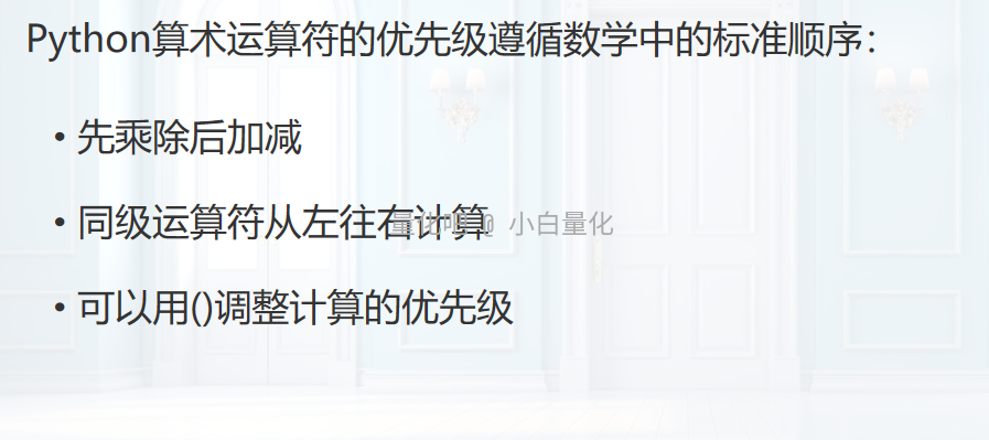 Python算术运算符的优先级遵循数学中的标准顺序: