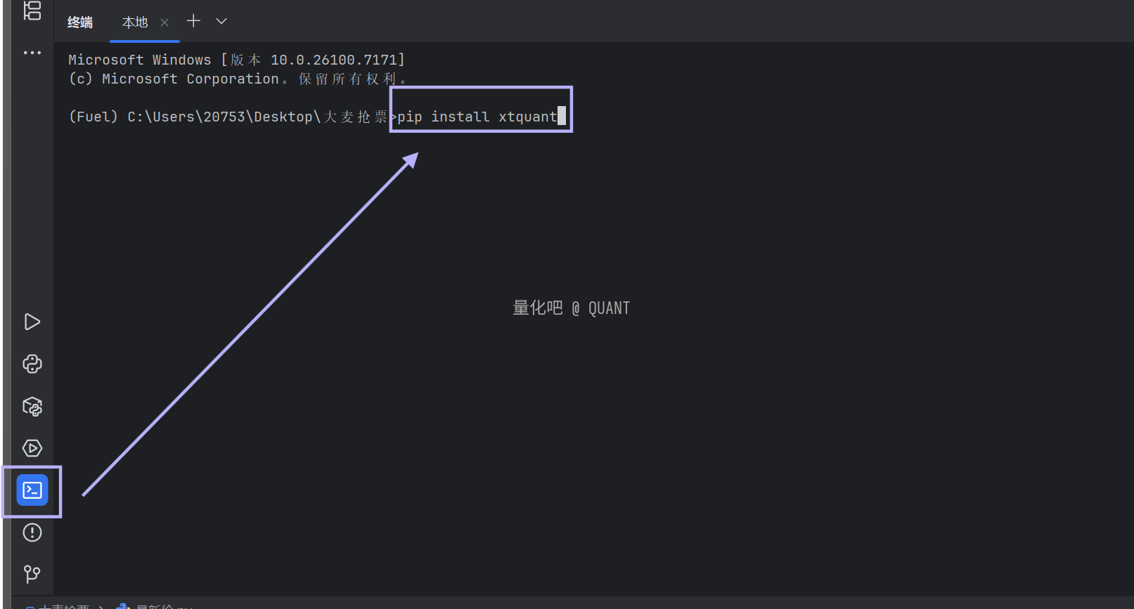 •②安装xtquant库:通过在终端通过 pip命令即可轻松安装:pip install xtquant