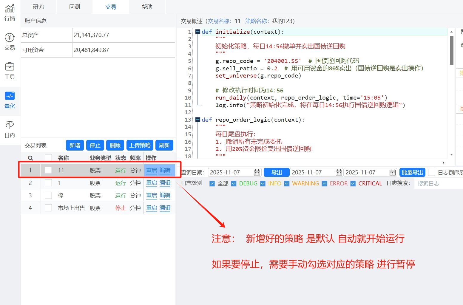 策略到新增列表后会自动的启动 ,因此若需要关闭,则需要到交易列表手动 暂停 或删除。