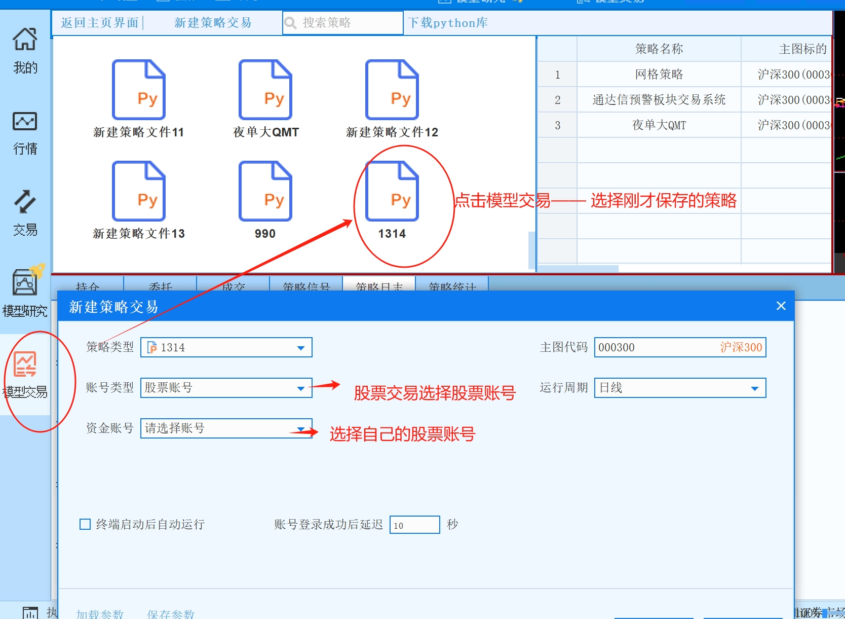第三步:点击“交易模型”,将刚才保存的策略点击出来,下图为例