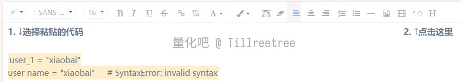 user_1 = "xiaobai" user name = "xiaobai" # SyntaxError: invalid syntax