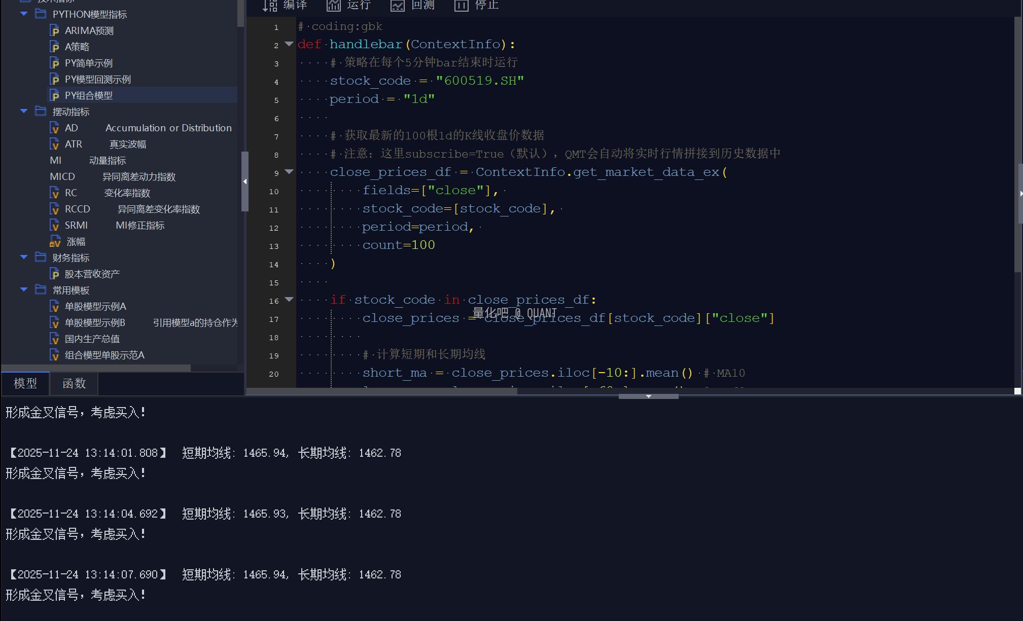 pass将本段代码我们复制到qmt去,看看输出结果: