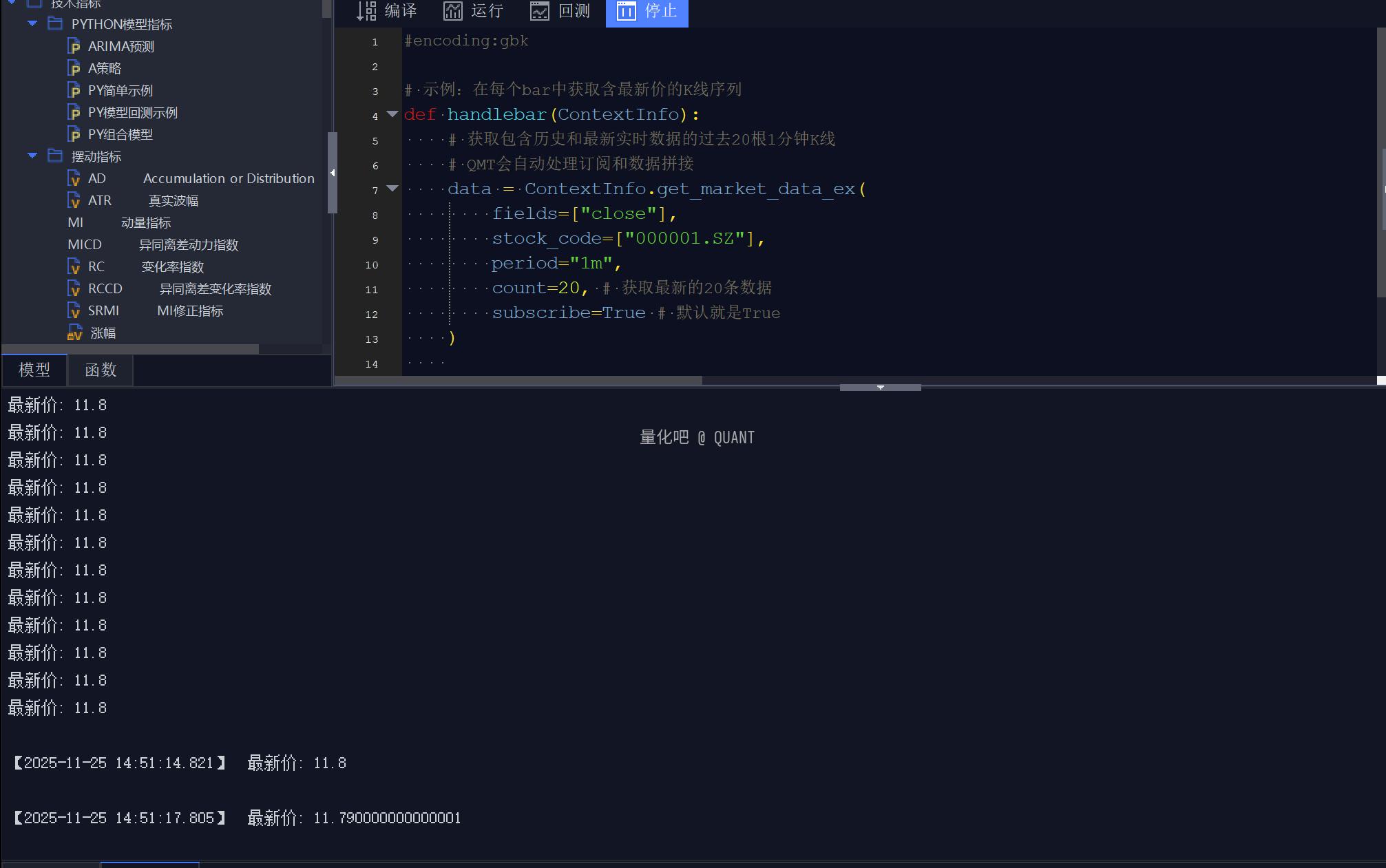 print(f"最新价: {current_price}")ContextInfo.subscribe_quote:专业的“推送”模式