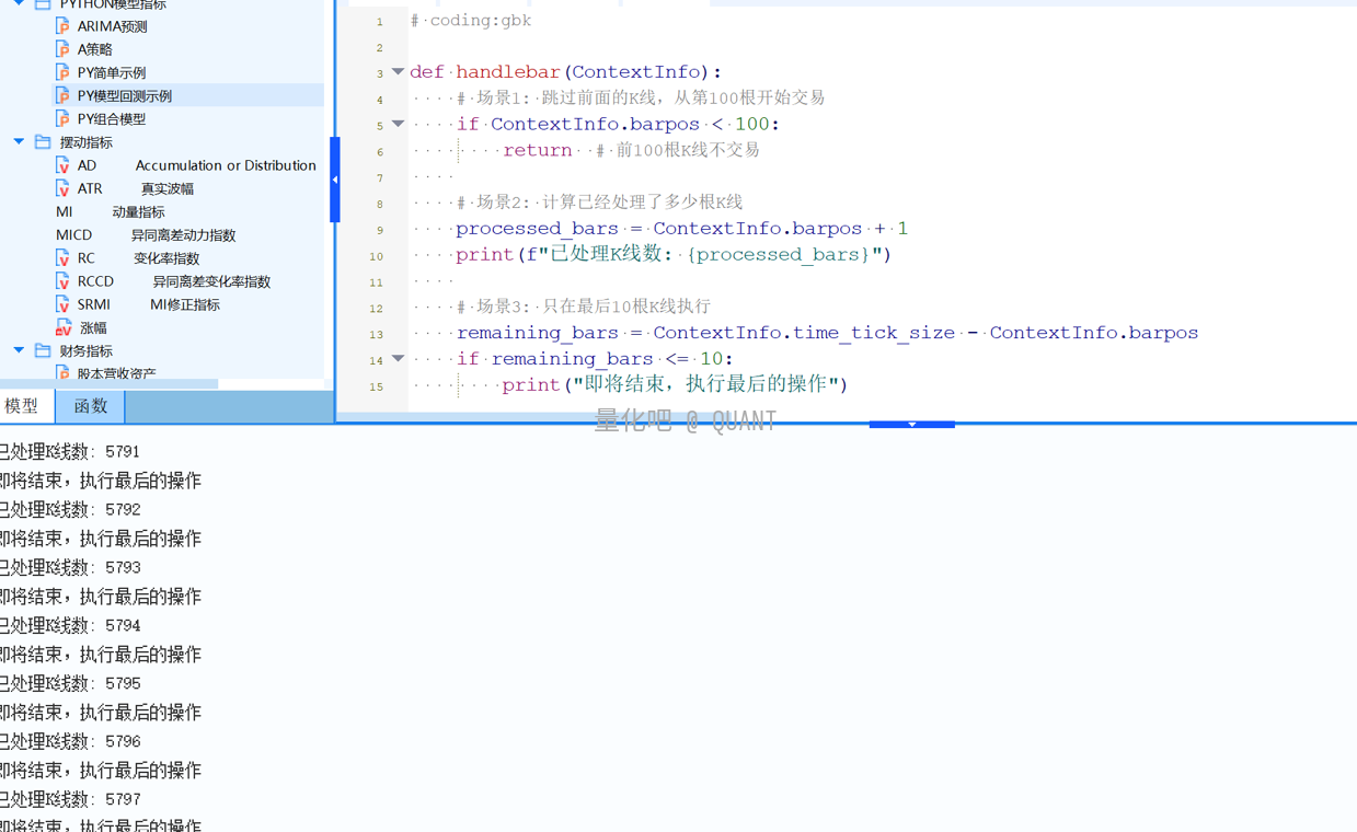 4.ContextInfo.barpos - 获取当前K线索引号(你有一堆K线排成一队,从第0个开始编号。barpos 就是告诉你现在处理的是第几跟K线)