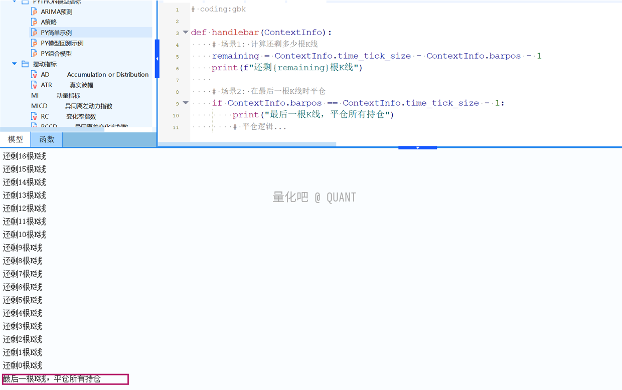 计算还剩多少根K线,在最后一根K线时平仓