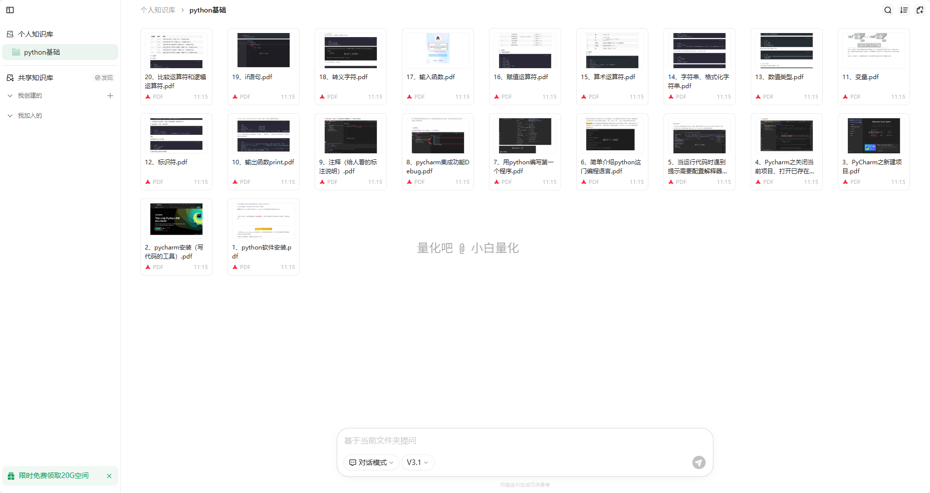 下面演示一下搭建知识库的过程,,后续知识点小白会持续完善下去!