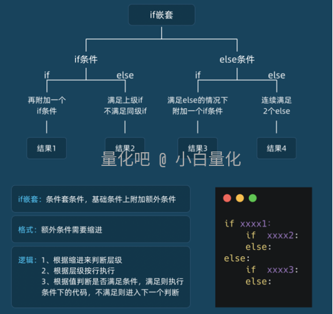 指在一个分支的代码块内部再包含另一个或多个分支结构