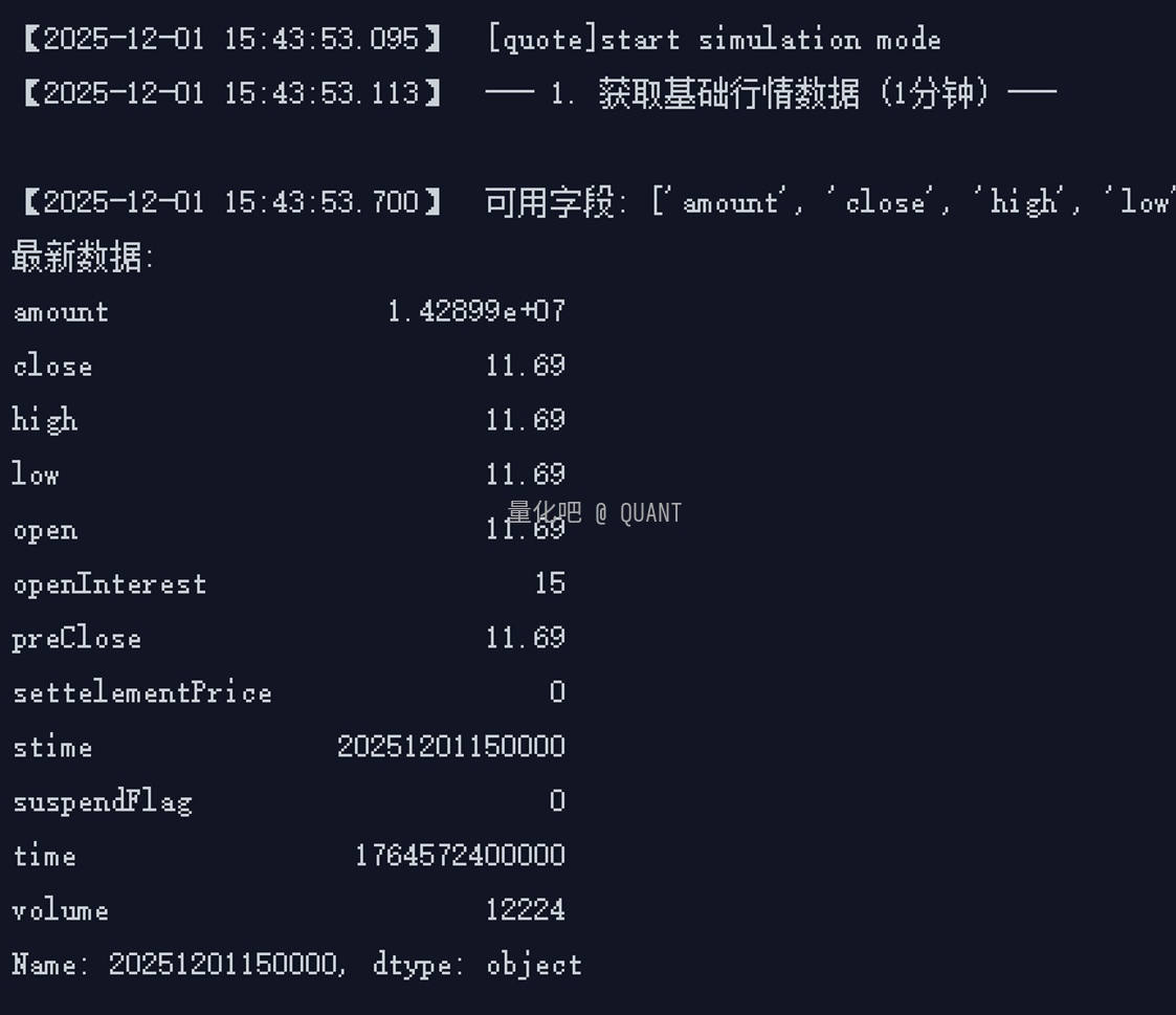 print("--- 1. 获取基础行情数据 (1分钟) ---")