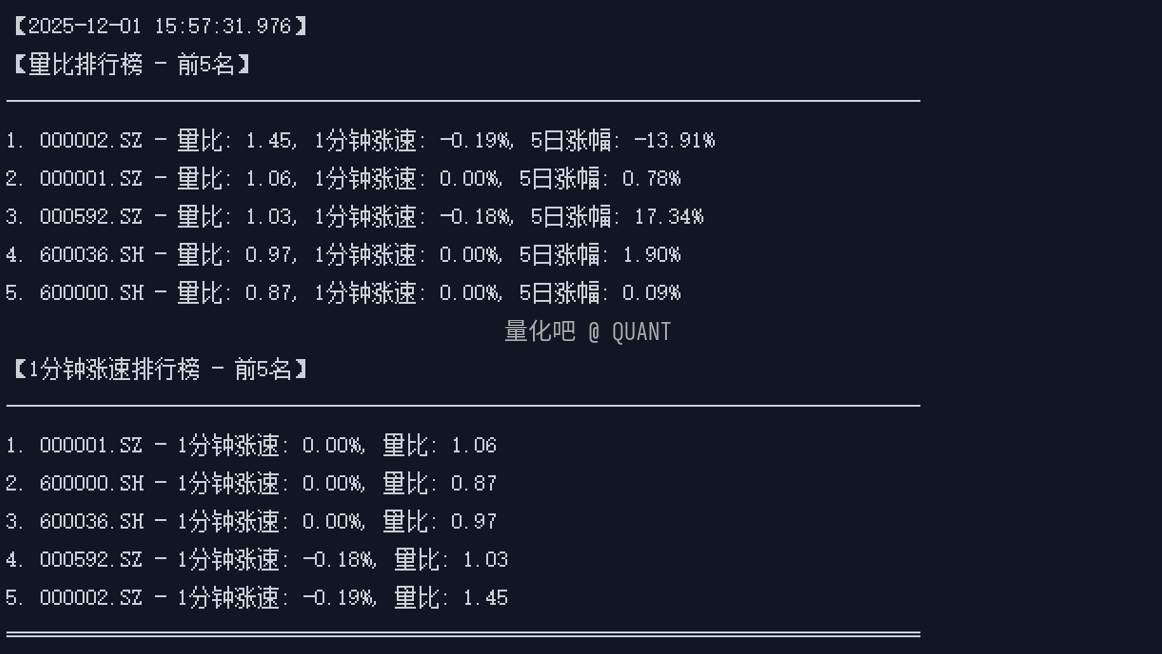 print(f"{i}. {item['stock']} - 1分钟涨速: {item['speed_1m']:.2f}%, "