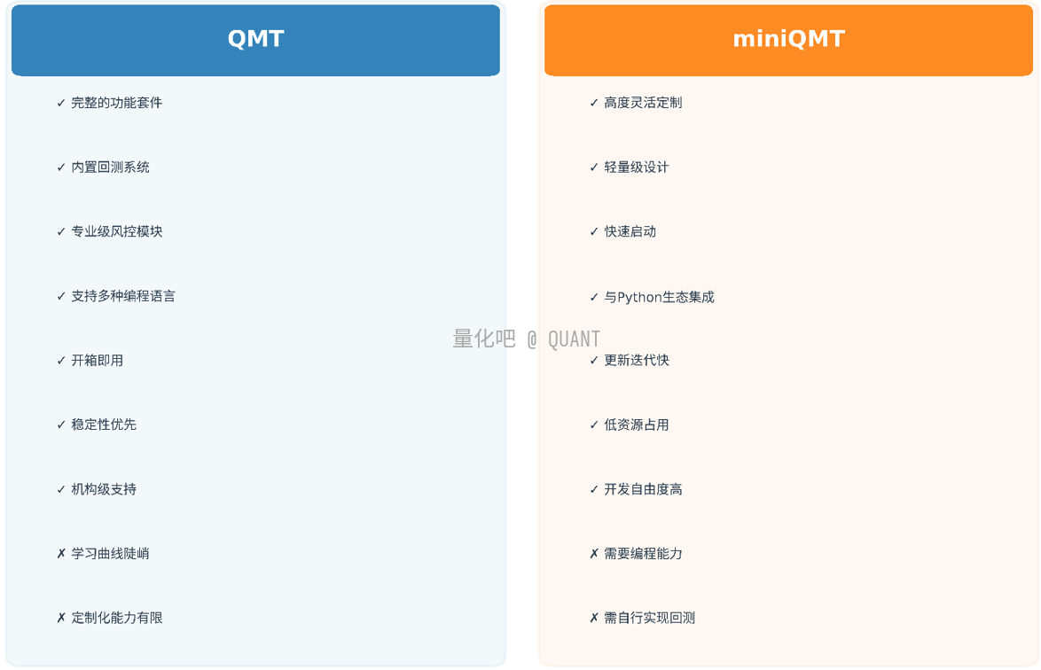 miniQMT继承了QMT的核心优势,并在简化操作、优化资源占用等方面进行了改进
