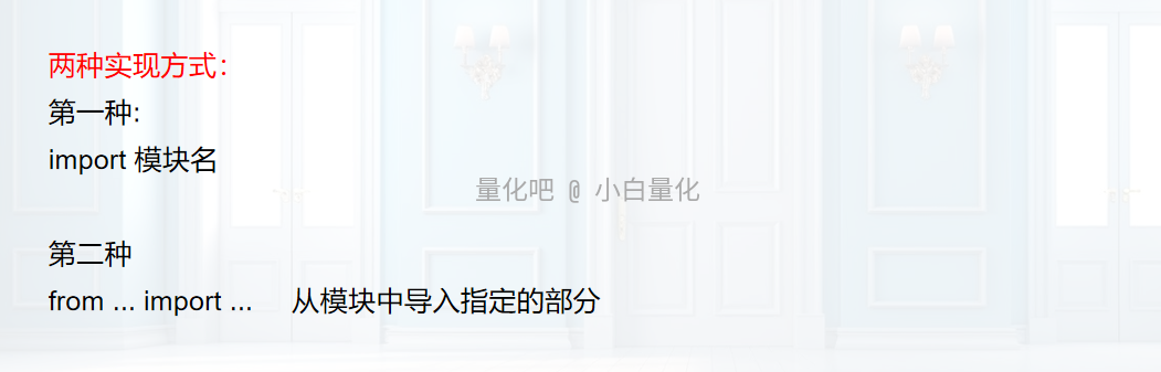 (1)import 模块名 [as 别名]:导入模块所有内容