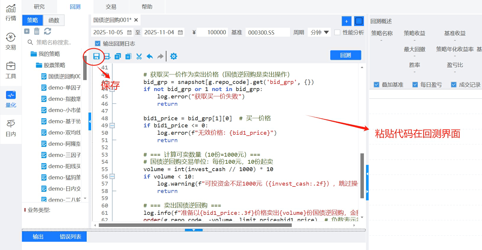 1.策略的参数修改 ,必须在回测界面进行修改并保存 ,不能在交易界面进行修改;