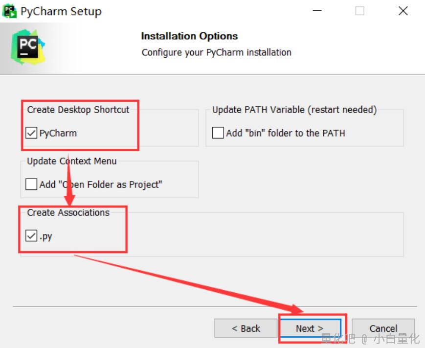 4、勾选pycharm和.py,然后点击NEXT【下一步】