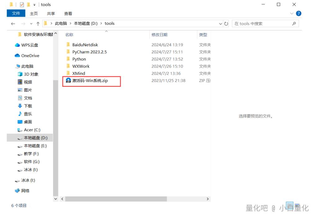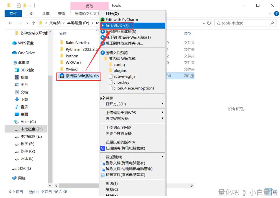 1、将压缩文件激活码-Win系统.zip复制到与PyCharm安装目录同级的目录下