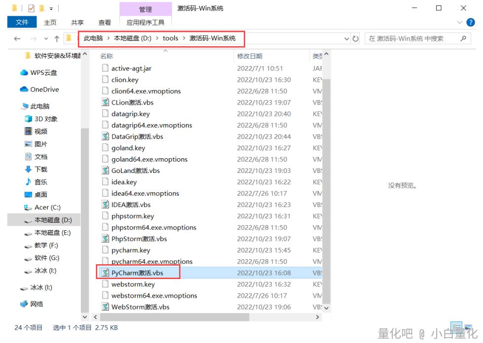 3、打开解压后的目录激活码-Win系统,然后点击pycharm激活.vbs文件