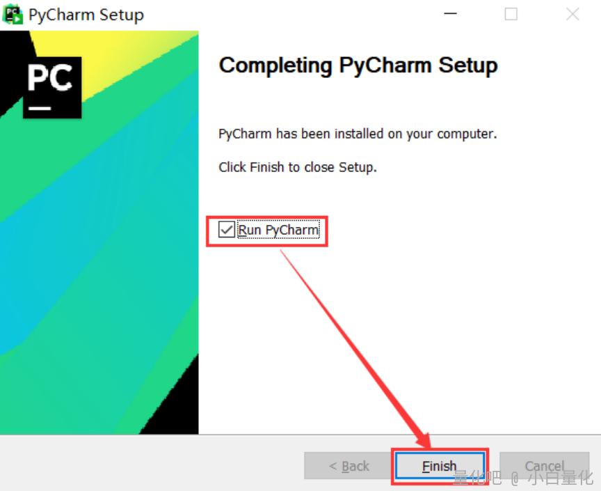 6、安装完成之后,勾选Run Pycharm[运行Pycharm],然后点击Finish(完成)