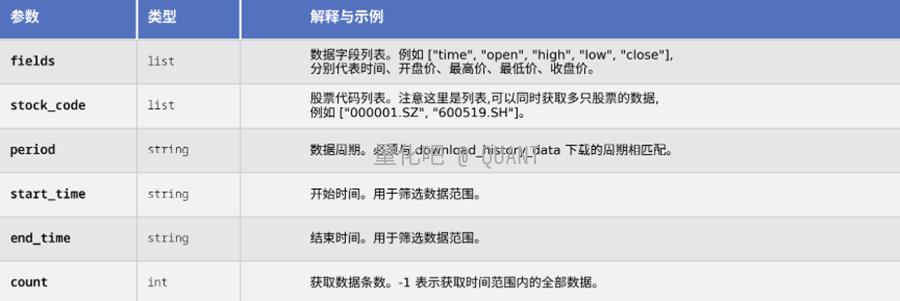 当数据下载到本地后, 就派上用场了。它允许我们从本地缓存中精确地提取出需要的数据字段和时间范围,是策略回测和实盘分析中最常用的函数之一。