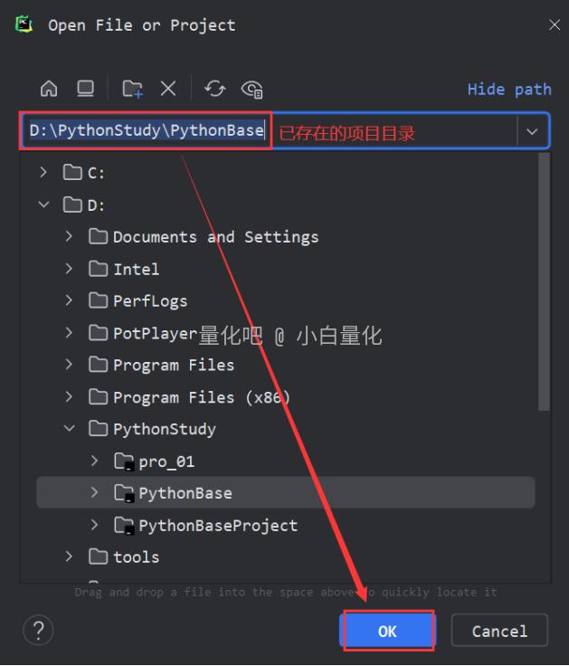 2、在弹出的文件选择对话框中,通过浏览文件系统,精确定位并选中项目所在目录(即项目文件夹),随后点击 OK按钮,即可迅速加载并打开已存在的项目