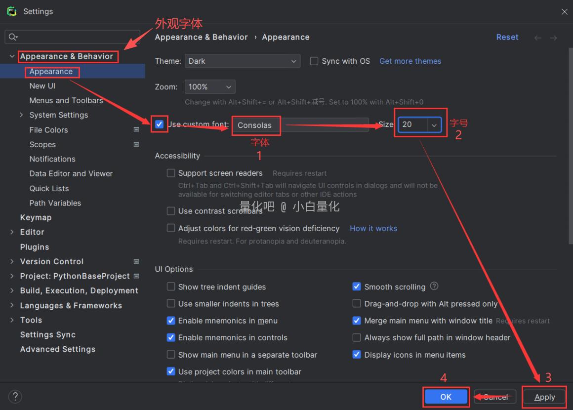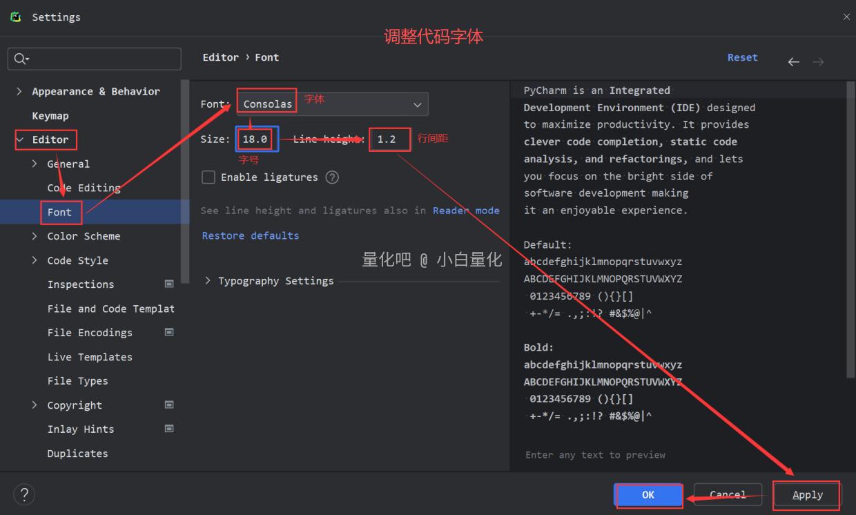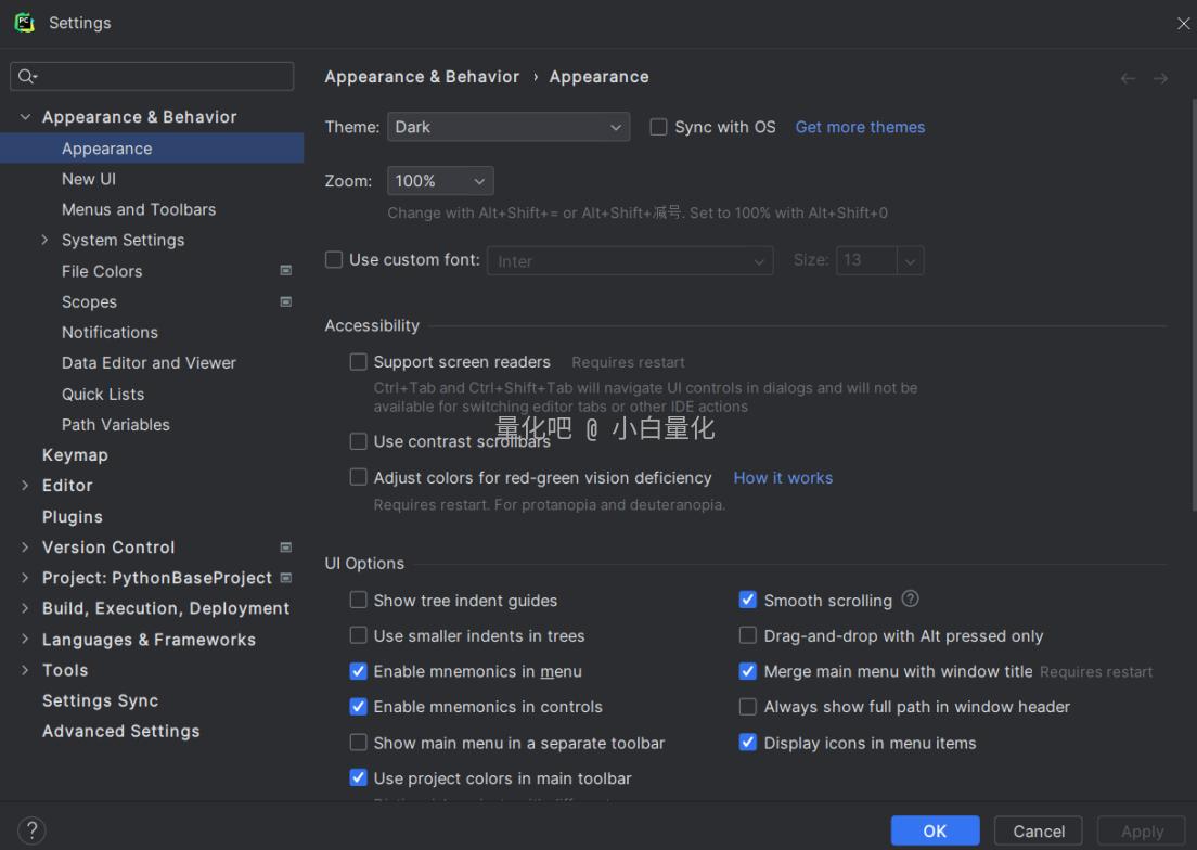 在PyCharm中,通过 Settings [设置]界面,用户可以便捷地调整字体大小与样式、选择心仪的主题,从而根据个人偏好定制和优化编程环境,提升编码舒适度与效率。此外,还能轻松配置本地Python解释器,确保项目能够基于正确的Python环境运行,进一步增强开发体验。
