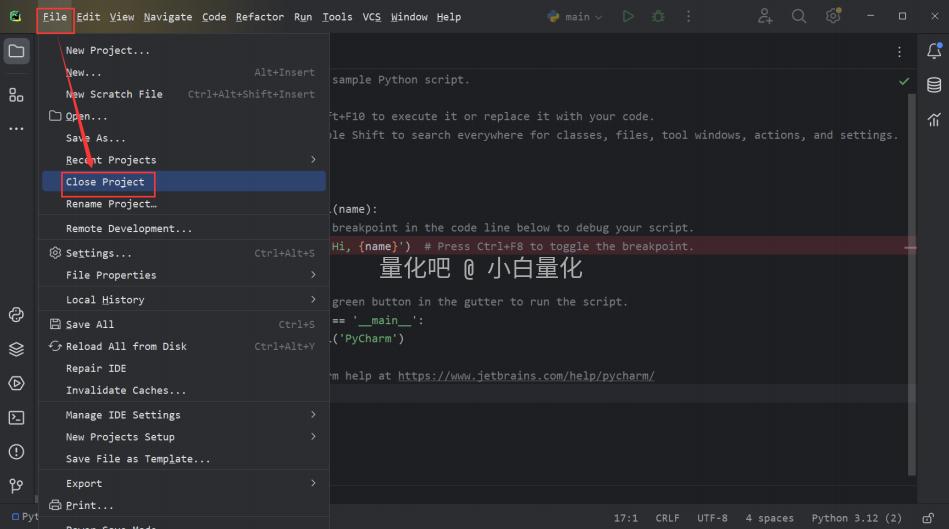 除了新建项目之外,我们还可以在PyCharm中高效且便捷地打开已存在的项目,以继续我们的开发工作或进行项目管理。这种方式允许我们直接访问项目文件、配置和依赖项,无需从头开始创建新项目。